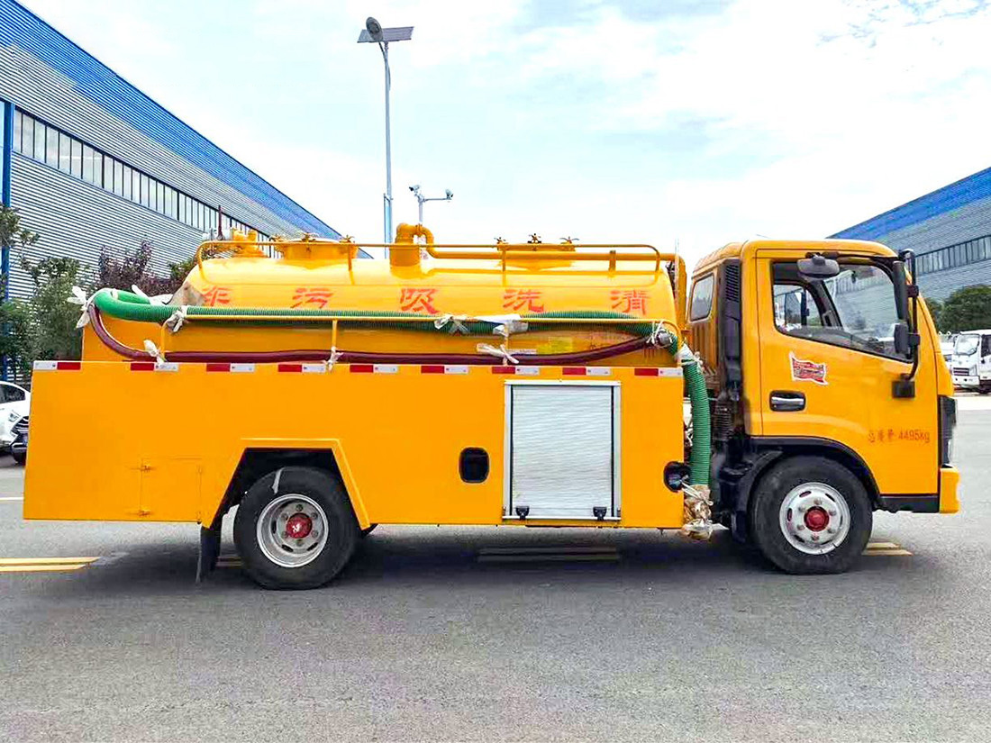 吸污部分:3.8方污罐,罐體5mmQ235優(yōu)質(zhì)碳鋼,配淄博SK-9水循環(huán)泵(北方地區(qū)可選裝威龍真空油泵),8米吸污管一根,進(jìn)氣管加過濾網(wǎng),防溢閥加高,后蓋卡扣鎖緊,前視污亮管,后尾部加裝1個力拓牌100、150mm的球閥均帶進(jìn)出口。