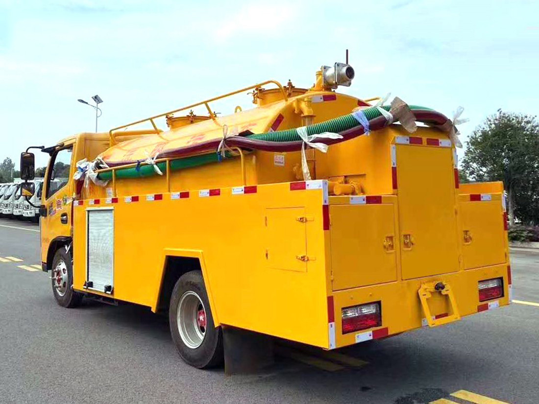 清洗部分:1.8方水箱,采用4mmQ235優(yōu)質(zhì)碳鋼板,水箱兩側(cè)消防接口進(jìn)水,工具箱一個。采用德國品浮高壓泵170升流量,24兆帕,配60米內(nèi)徑19#高壓管,10個大小不同噴頭一套, 后置式清洗卷盤,帶淋管裝置(用于淋洗高壓管疏通管道過后上面殘留的污物),帶氣吹水功能(用于吹出每次高壓管工作完以后內(nèi)部殘留的水漬,防止天冷結(jié)冰影響下次使用)