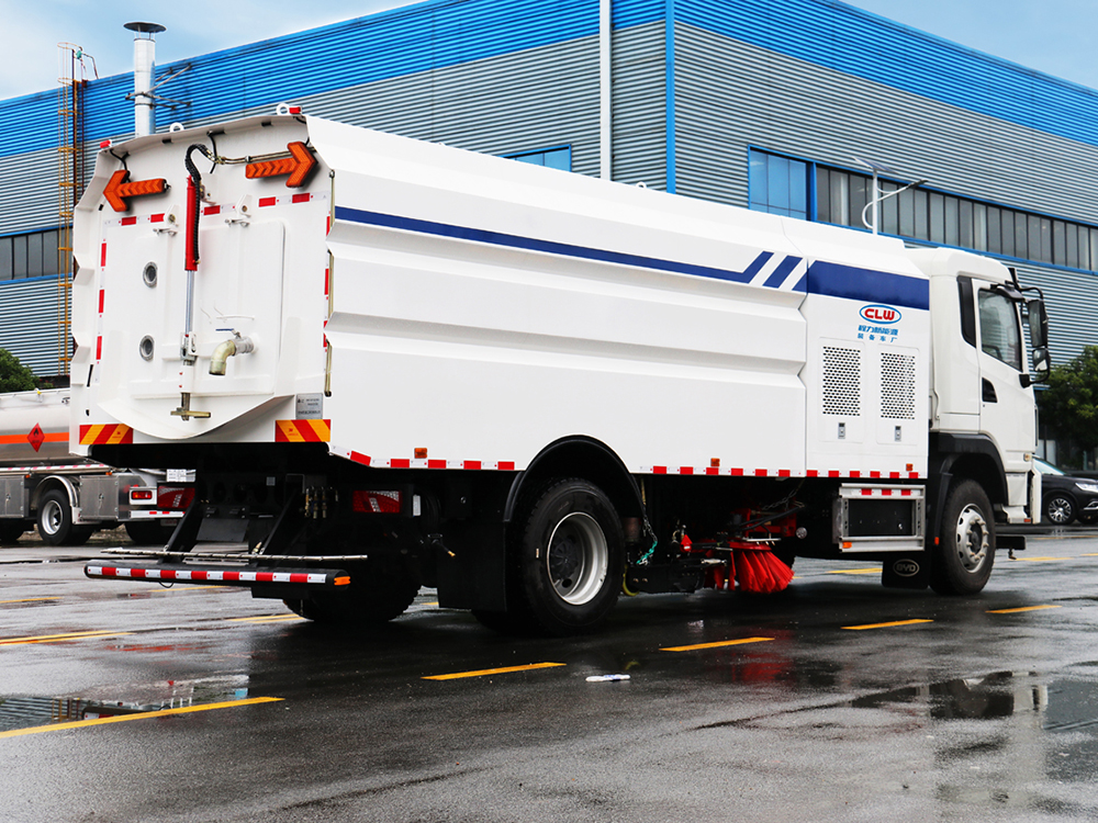 7、程力牌純電動(dòng)洗掃車(chē)具有路面清洗、路面清掃、路緣清洗、路緣和路緣石立面洗刷、低壓沖洗、噴霧除塵等多功能。有“全洗掃”、 “左洗掃”、 “右洗掃”、 “全掃”、 “左掃”、 “右掃”等多種作業(yè)模式可選擇。選擇“全洗掃”模式清洗廣場(chǎng)和路面,清洗效率高效果好,洗凈率達(dá)90%以上。選擇“左洗掃”或“右洗掃”模式清洗路面和路緣、洗刷路緣石立面。需要進(jìn)行路面清掃或路面保潔作業(yè)時(shí),可選擇掃路模式。需要噴霧除塵時(shí),可開(kāi)啟噴霧裝置,進(jìn)行噴霧除塵作業(yè)。